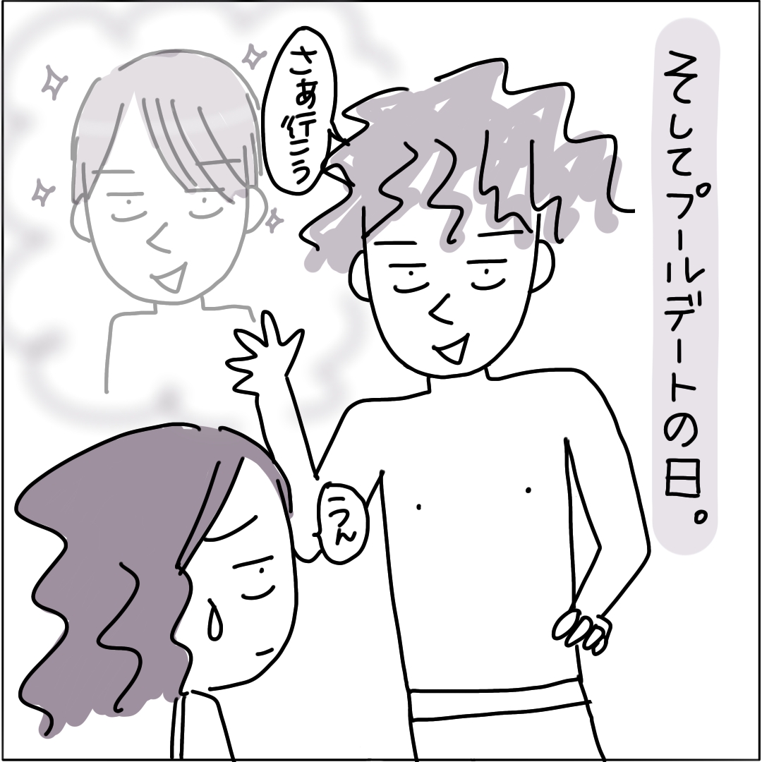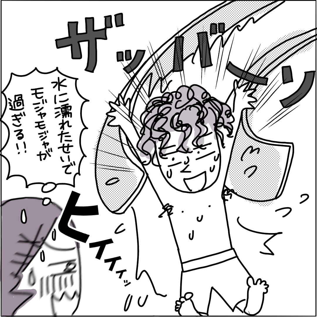 憧れのプールデイトもモジャモジャのせいで恋が覚めてしまうよ…スライダーから降りてきた時なんて海から打ち上げられたワカメにしか見えず。